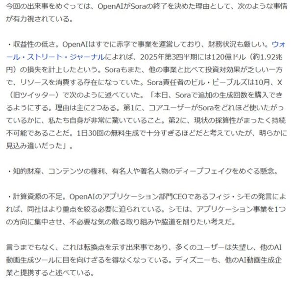 情報提供していただいた限りだと、SORA2はかなり勝手の良い動画で簡単な指示の呪文?(プロンプト)で動画を作ってくれるらしく、アダルト規制はあるにせよ可能性あったのに残念だ。